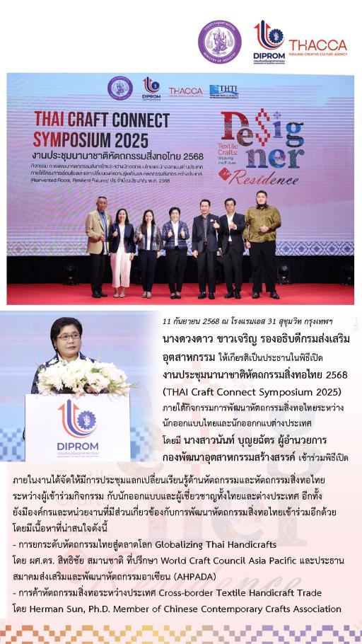 พิธีเปิด งานประชุมนานาชาติหัตถกรรมสิ่งทอไทย 2568 (THAI Craft Connect Symposium 2025) ภายใต้กิจกรรมการพัฒนาหัตถกรรมสิ่งทอไทยระหว่าง นักออกแบบไทยและนักออกแบบต่างประเทศ
