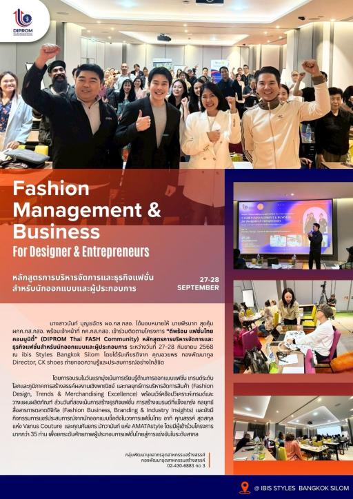 ชวนสายแฟฯ อัปเกรดสกิลธุรกิจ! เสริมพลังนักออกแบบและผู้ประกอบการแฟชั่นด้วยหลักสูตร “Fashion Management & Business for Designers & Entrepreneurs” ภายใต้โครงการ “ดีพร้อม แฟชั่นไทย คอมมูนิตี้ (DIPROM Thai FASH Community)”