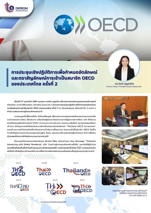 ดร.นันท์ บุญยฉัตร ผู้อำนวยการกองพัฒนาอุตสาหกรรมสร้างสรรค์ เข้าร่วมการประชุมเชิงปฏิบัติการเพื่อกำหนดอัตลักษณ์และตราสัญลักษณ์การเข้าเป็นสมาชิก OECD ของประเทศไทย ครั้งที่ 2